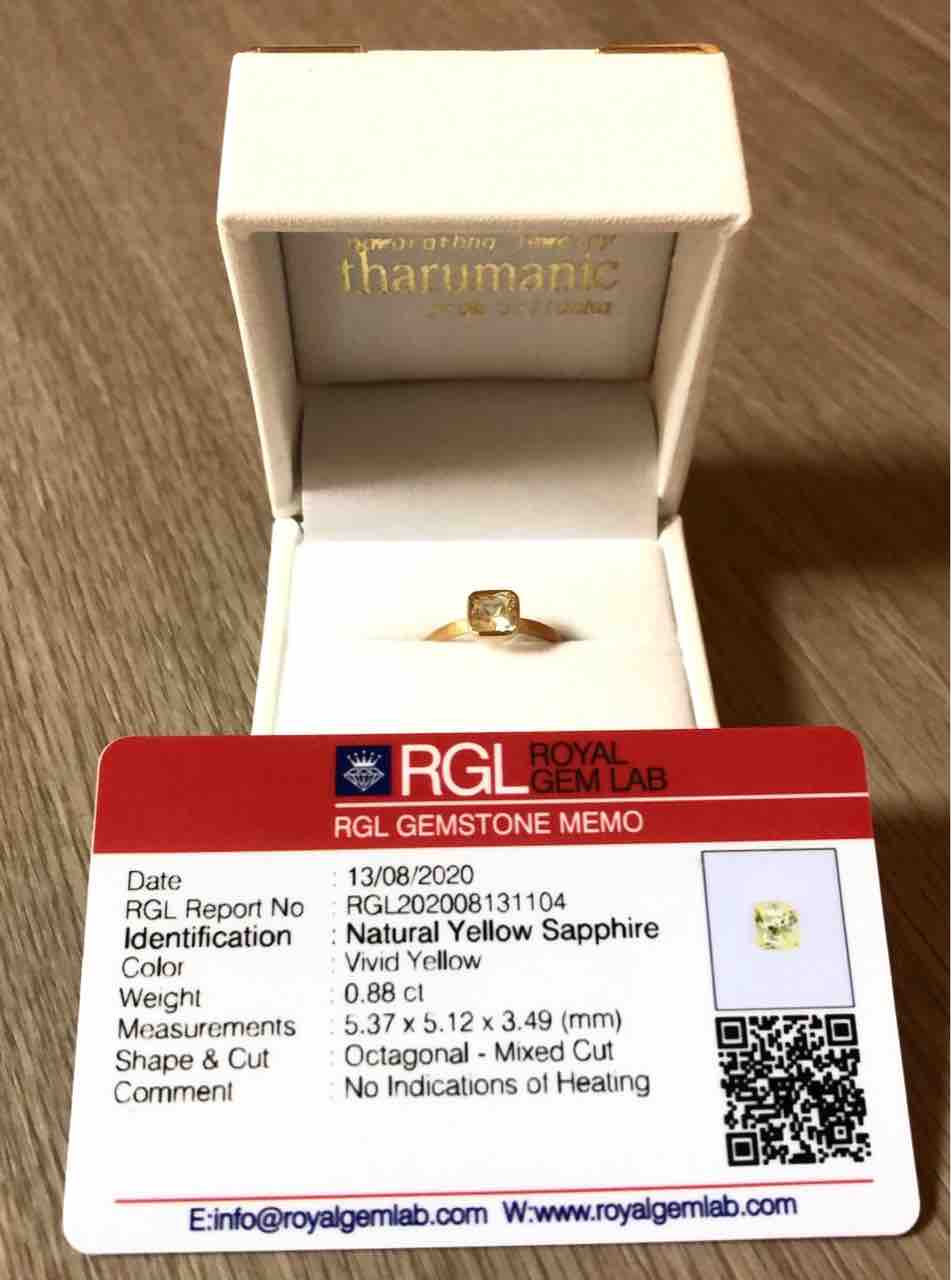 イエローサファイア石は八角形にカット。